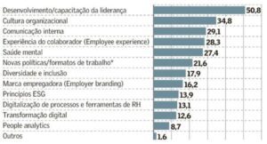 O Valor Econômico em levantamento realizado em 2023 em relação a prioridades para gestão em 2023, confirma esta tendência trazendo em primeiro lugar com mais de 50% das respostas, a capacitação da liderança:
